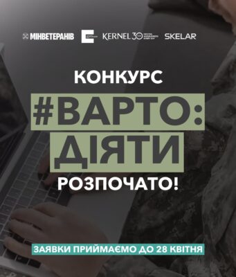 Український ветеранський фонд Мінветеранів розпочинає приймати заявки на конкурс “Варто діяти”, який реалізується у партнерстві з Kernel та SKELAR.