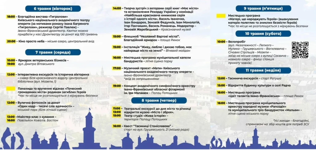 7 травня Івано-Франківськ відзначає 363-тю річницю з дня свого заснування. Святкові заходи з нагоди Дня міста триватимуть з 6 до 12 травня.